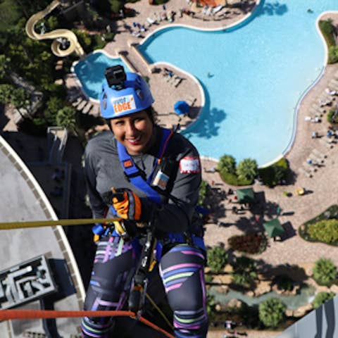 ORLANDO, FLA. (Feb. 28, 2019) - For the second year in a row, Holiday Inn Club Vacations team members participated in the Over The Edge fundraiser for Give Kids The World, going “over the edge” and down the side of a building. IT Manager Jimmy Dean, Operations Specialist Christina Perez and Community Relations and Events Coordinator Luz Limardo joined more than 50 individuals in rappelling 32 stories down the Hyatt Regency Orlando on Feb. 8.
